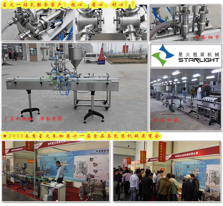根據(jù)我國現(xiàn)階段醬料生產(chǎn)企業(yè)多為中小企業(yè)的現(xiàn)狀,瓶裝醬料自動灌裝機現(xiàn)一般采用雙頭直線式灌裝,配合星火公司理瓶機、自動旋蓋機、噴碼機、貼標機及熱收縮包裝機形成一套自動醬料灌裝生產(chǎn)線。本套醬料灌裝生產(chǎn)線大大提高了企業(yè)生產(chǎn)效率和對灌裝精度的要求,自動化程度高,節(jié)省勞工成本。